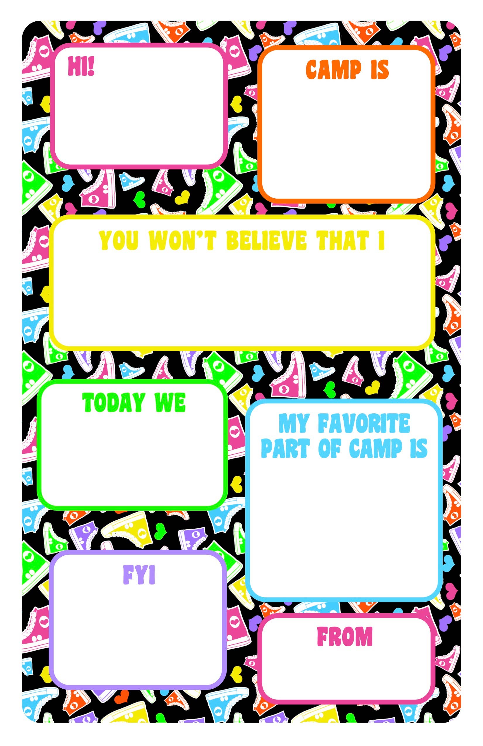 Camp mail just got cooler! This high-top sneaker-themed notepad is perfect for kids who like to stay fresh and stay in touch. Each page features 7 fun prompts to help your camper easily share stories, updates, and shoutouts from their bunk. With 20 pages included, this makes letter-writing fun, stylish, and sneakerhead-approved.