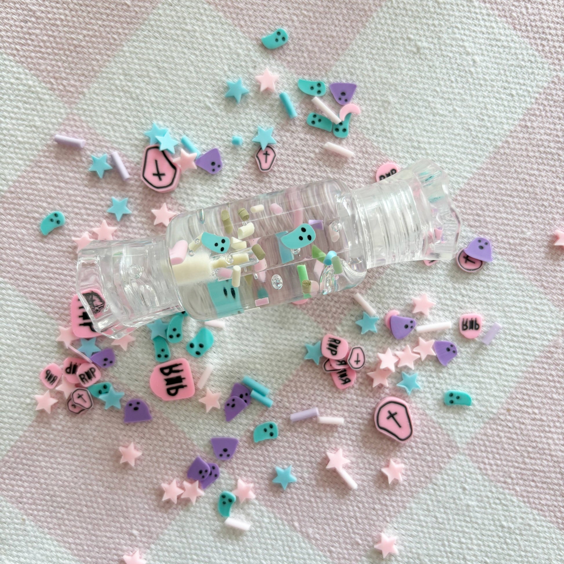 Treat your lips to a spooky-sweet shine! This pastel ghost lip gloss is flavored with salted caramel for the perfect Halloween twist. The clear, moisturizing formula leaves lips soft, smooth, and sparkling—while the adorable ghost packaging makes it a must-have for trick-or-treating, party favors, or gifting. Cute, whimsical, and purse-ready, it’s a gloss that’s scary fun to wear.