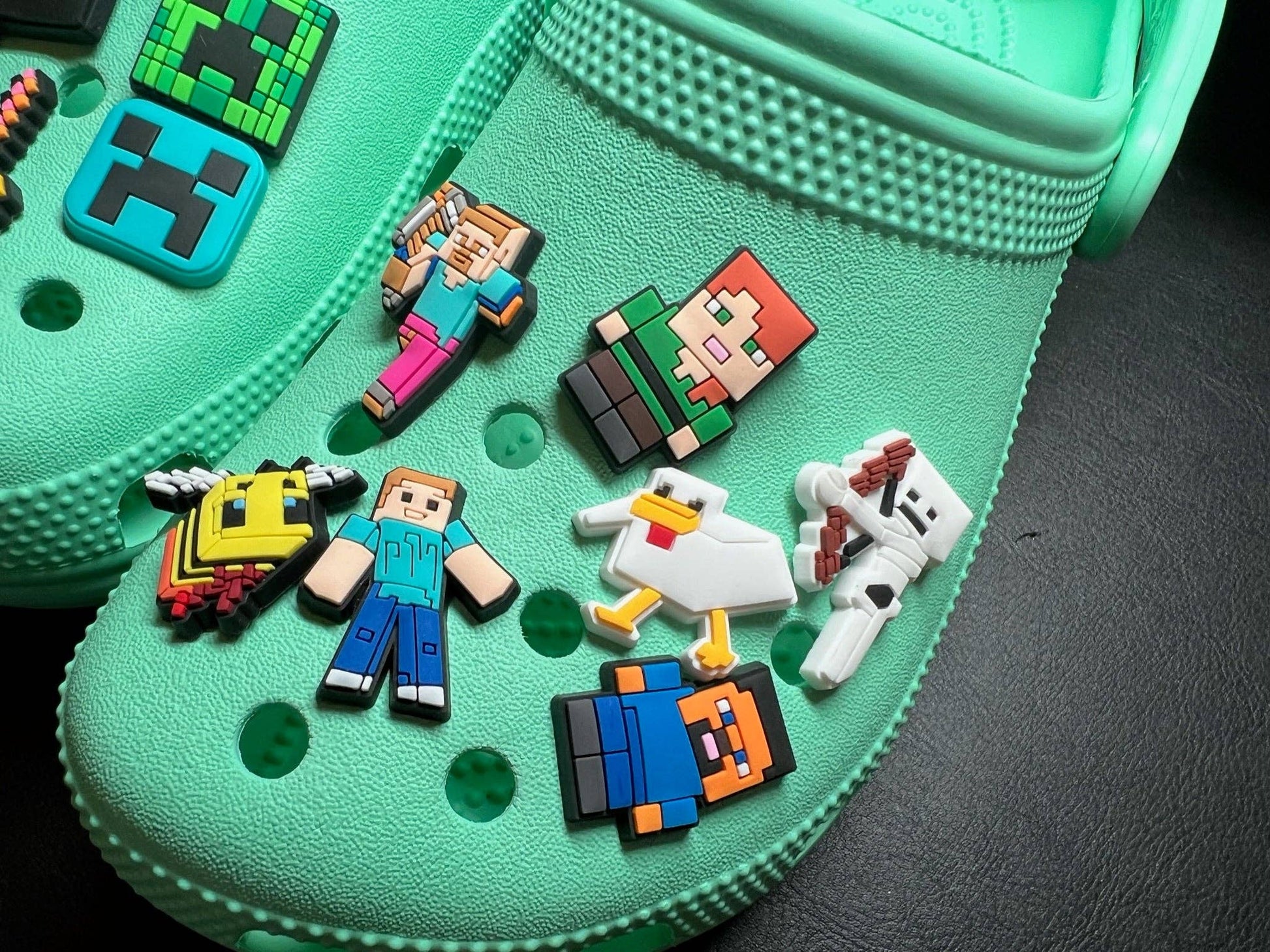 Level up your look with these pixel-perfect Minecraft-inspired charms! Designed to fit croc shoes, these collectible cuties bring all the blocky fun straight to your footwear. Crafted from premium waterproof PVC, they’re durable, non-toxic, and built to survive any real-world adventure—just like your favorite game. Perfect for gifting, party favors, or trading with friends, these charms turn everyday shoes into a creative build!