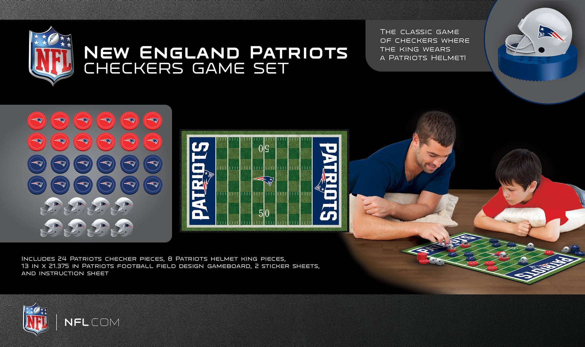 new england patriots game, patriots checkers game, nfl checkers, football board game, patriots gift, nfl family game, sports themed board game, masterpieces nfl game, patriots fan gift, classic checkers nfl