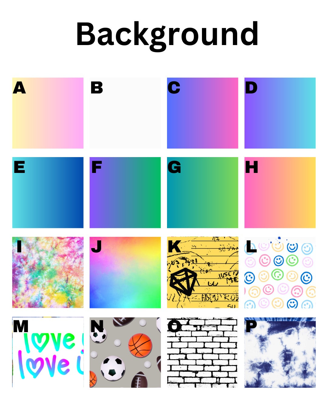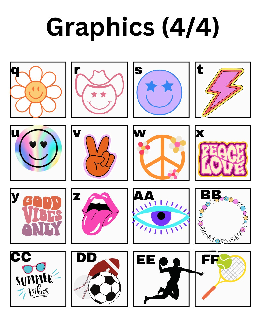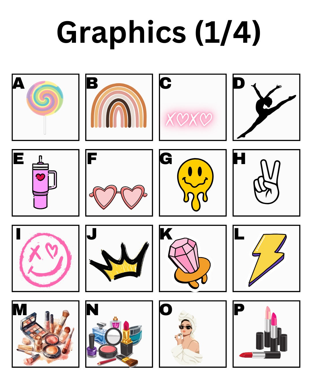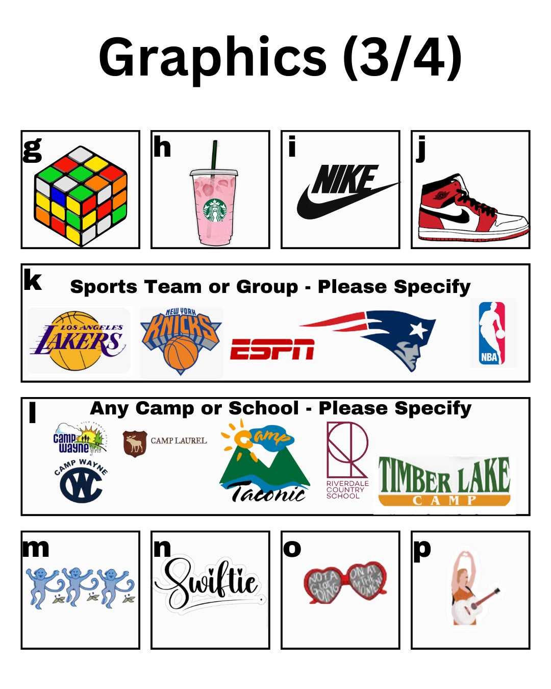 - Icons to add (see options in the pictures, or list 10-15 favorite things (sports, teams, schools, foods, hobbies, brands, skin care, activities)