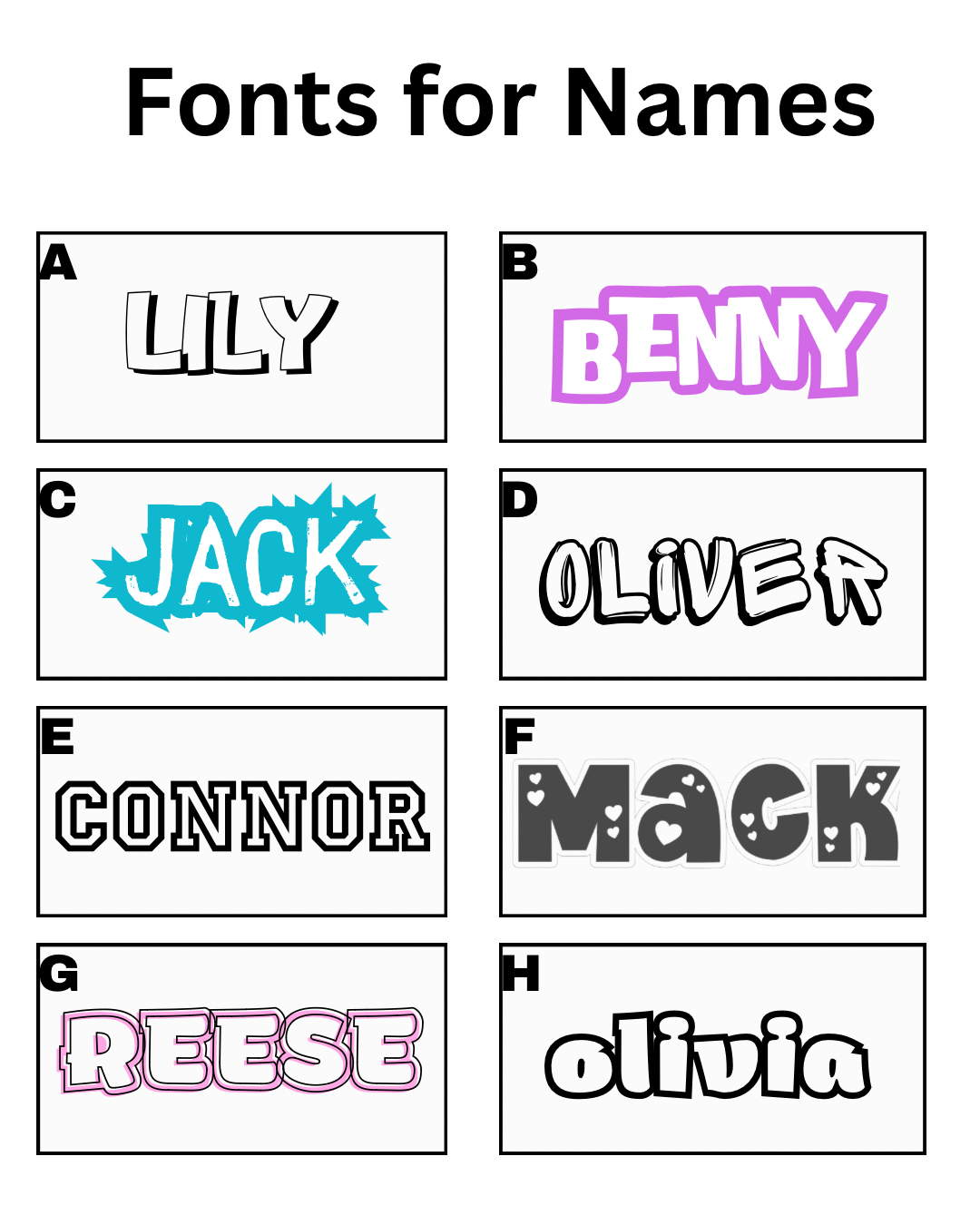 - Font (see options in the pictures)