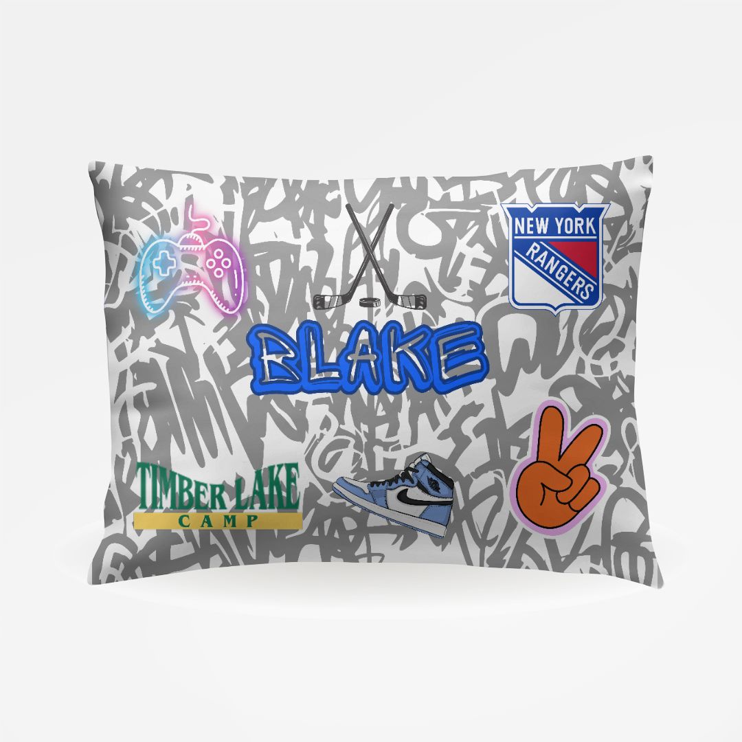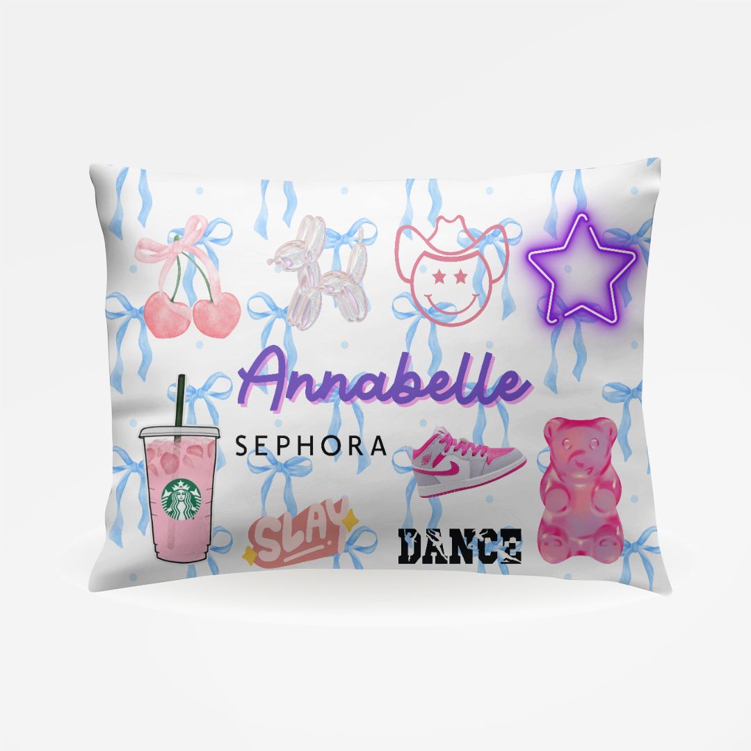 Personalized favorite things pillowcase, personalized for your camper's camp, school, sleepaway camp, and favorite things. This pillowcase fits "standard" bed pillows 20" x 30". You will appreciate the silky smooth microfiber feel. This is the perfect bunk decor for anybody looking to stand out and is available in any custom fonts, images, brands, or logos.