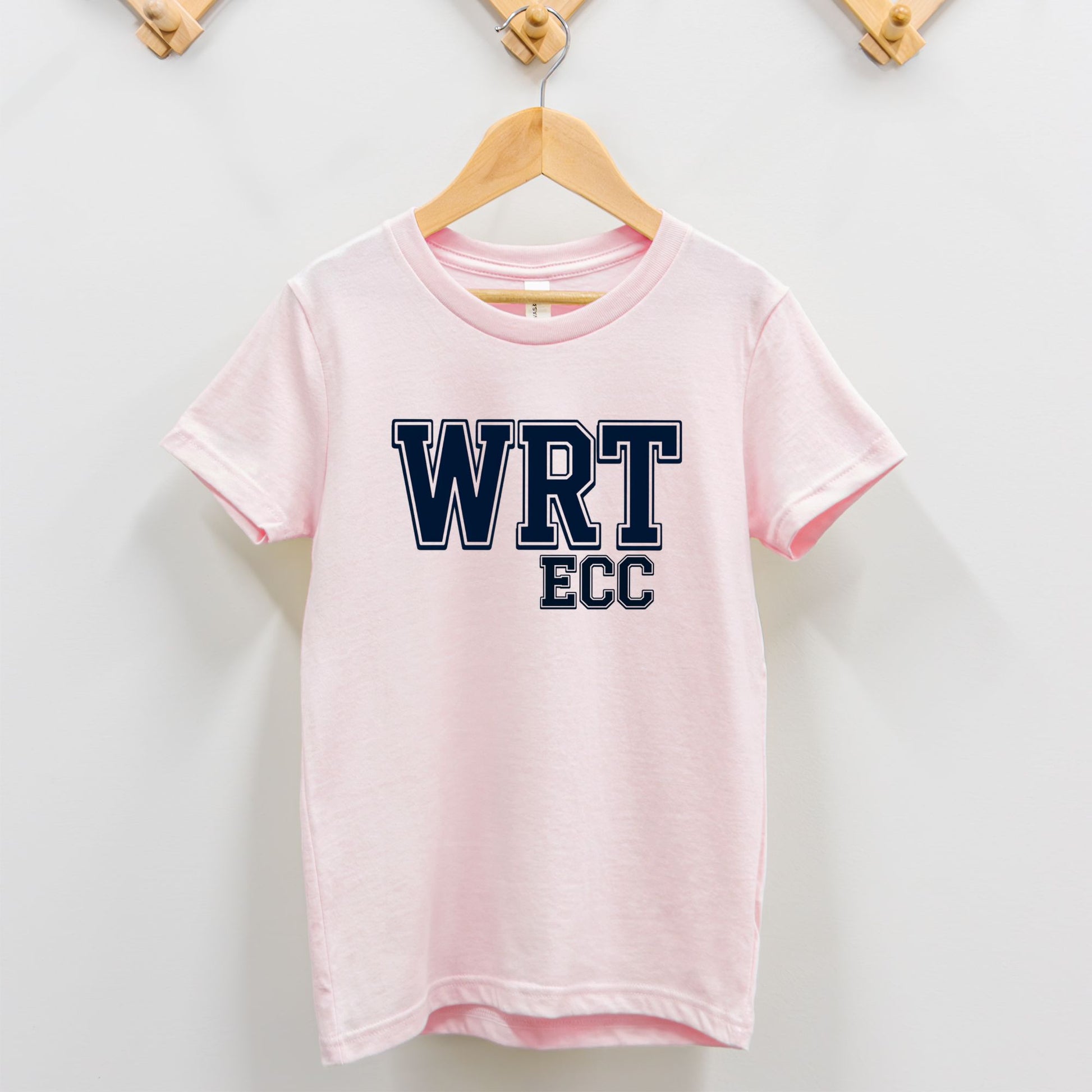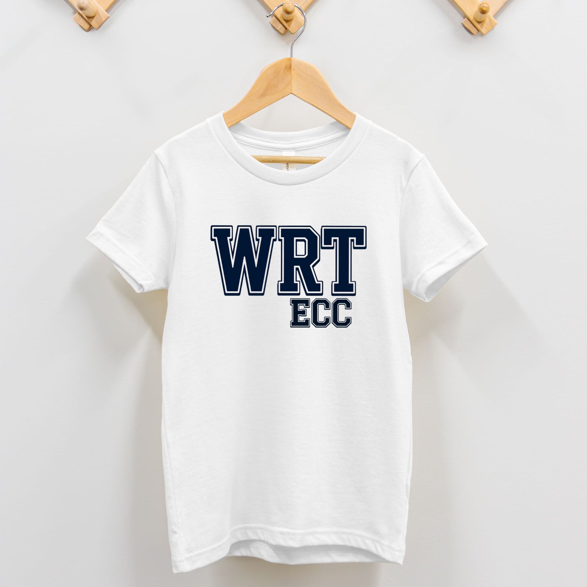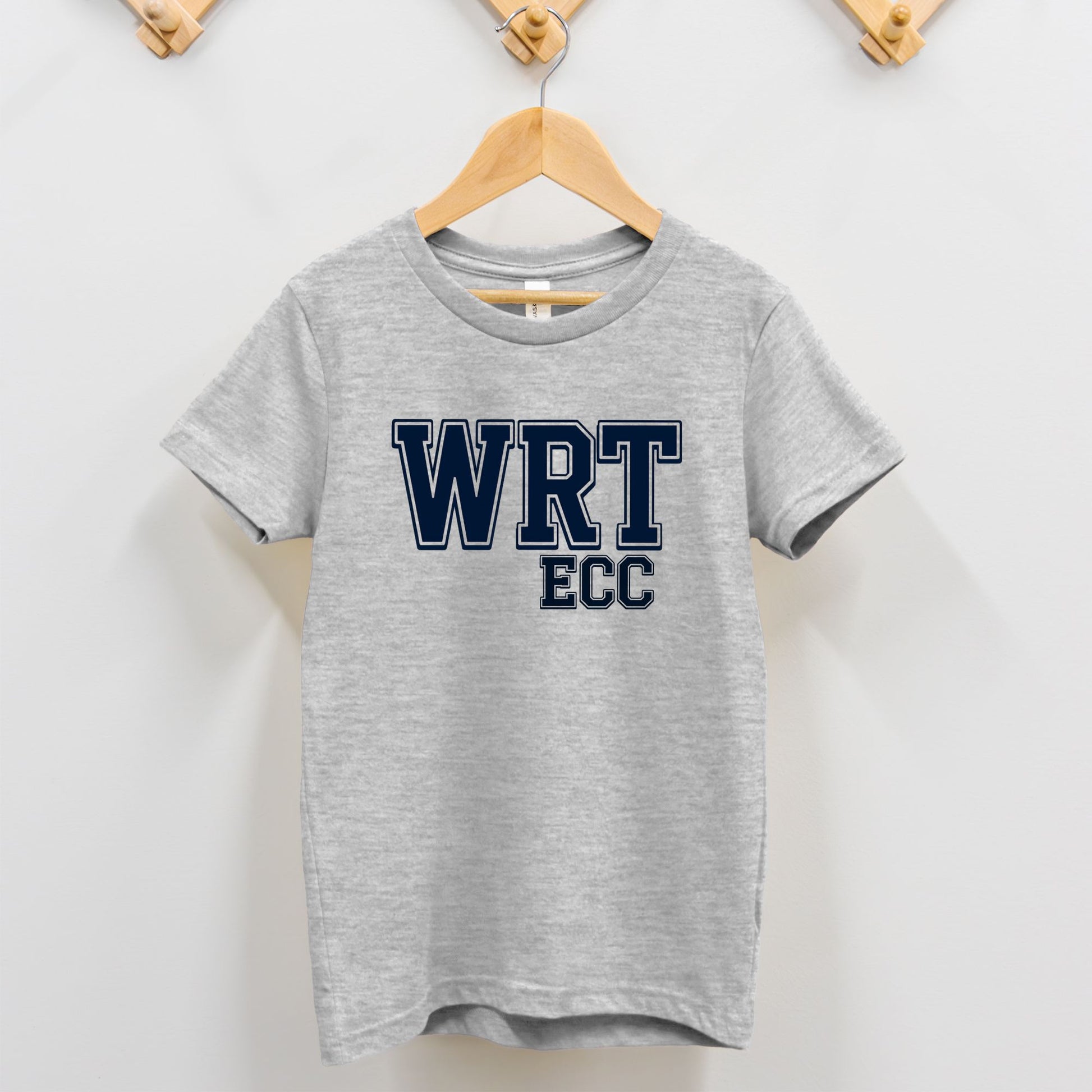 The ultimate βgame dayβ look for even the tiniest fans! This toddler tee brings all the classic college vibes with bold navy WRT ECC varsity letters against a heather grey backdrop. A timeless school spirit staple for nursery school pride.